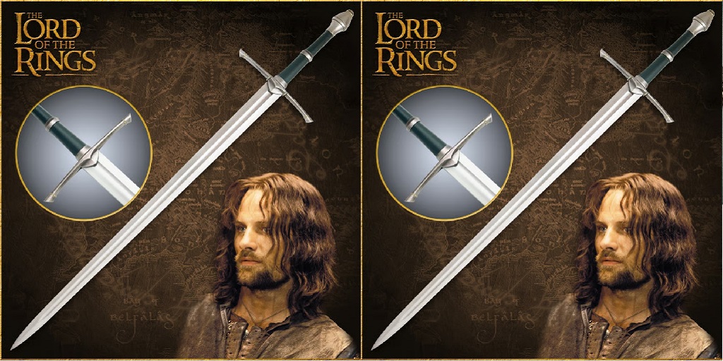 In Tolkien’s books, Andúril, Aragorn’s sword, is described with a sense of grandeur and history. When it is reforged in The Fellowship of the Ring, it shines with a light that reflects its name: a flame. The blade bears runes etched along its length, and its presence is immediately tied to Aragorn’s role as the rightful heir of Isildur.